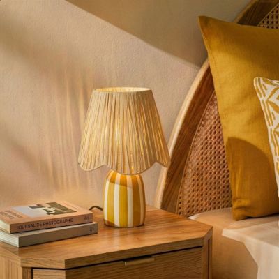 Lampe à poser en céramique rayée blanc, jaune et fibres tressées H.30 cm E27 40 W Jumell Quoki