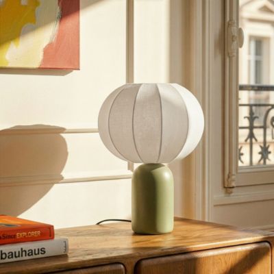 Lampe à poser en céramique vert et tissu blanc H.33 cm E27 40 W Jumell Requi