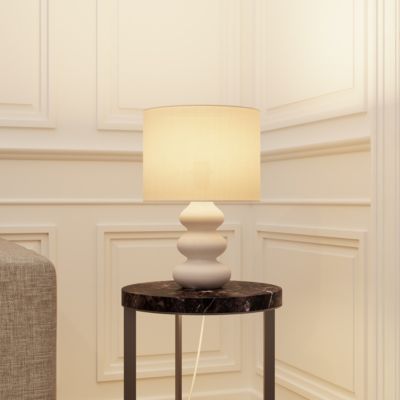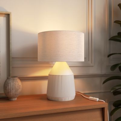 Lampe à poser en céramique et tissu blanc Spirea Ø.26 x H.40cm E27 15W GoodHome