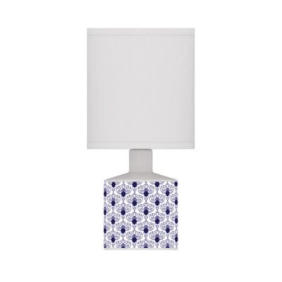 Lampe à poser en céramique fleurs bleues marine Ø.14 x H.29cm E14 40W Lussiol, Gisèle