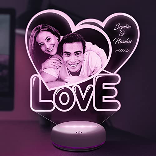 Lampephoto.fr, Lampe de chevet tactile Personnalisée par gravure laser avec télécommande, veilleuse adulte Photo et Texte Personnalisable, Lampe de chevet LED chambre Cadeau de Noël (coeur love 2)