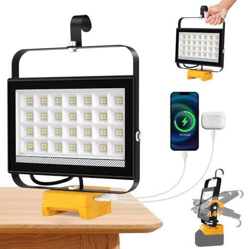 T-SUN Projecteur Led Rechargeable, 100W Projecteur Led Chantier Portable Compatible avec Batterie Dewalt, 2 Modes D'éclairage & USB Lampe de Chantier Rechargeable pour Camping Garages Réparations