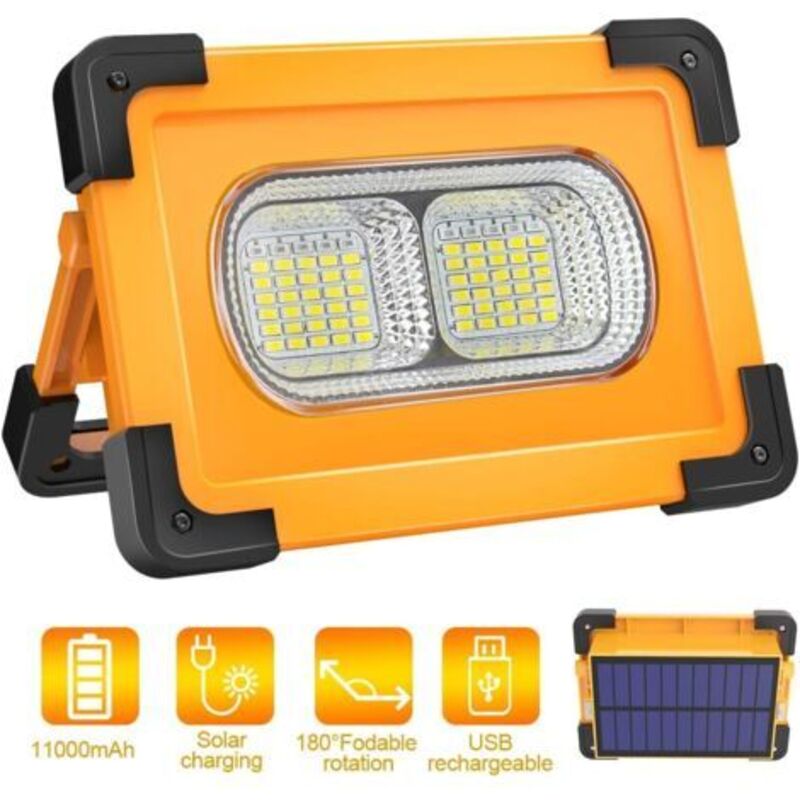 Projecteur led Chantier Lampe Rechargeable Solaire 80W, 4 modes Portable led Lampe de Travail Étanche usb 11000mAh Batterie avec Aimant pour