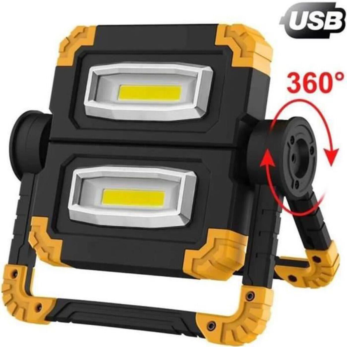 2 Packs 60W Projecteur LED Rechargeable 120 COB 4 Modes Lampe Rechargeable Solaire Projecteur LED Chantier Lampe de Travail Étanche Spot Led Rechargeable, Lumière d'Urgence, pour Camping, Bricolage