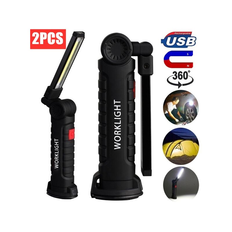 Baladeuse de chantier cob Torche Rechargeable Lampe de Travail d'Inspection Flexible - 2PC