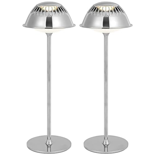 LuminexDesigns Lampe de Table Lot de 2 LED Sans Fil – Lampe de Chevet LED Tactile Dimmable Rechargeable Moderne, Design Élégant en Métal Argenté, Étanche pour Chambre Salon Bureau et Salle d’Étude