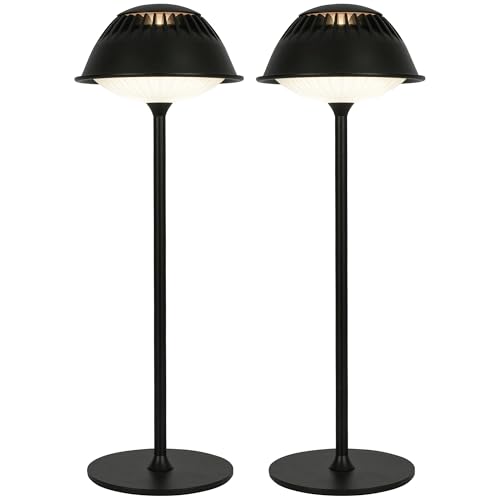 LuminexDesigns Lampe de Table LED Lot de 2 Sans Fil Rechargeable – Noir Lampe de Chevet Tactile Dimmable, Design Industriel Vintage en Métal Mat, pour Chambre, Salon, Bureau, Café et Bar