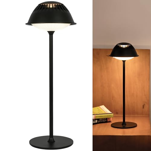 LuminexDesigns Lampe de Table LED Sans Fil Rechargeable – Lampe de Chevet Tactile Dimmable, Design Industriel Vintage en Métal Noir Mat, pour Chambre, Salon, Bureau, Café, Bar en Extérieur