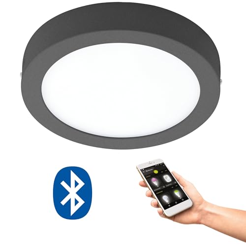 Eglo Plafonnier LED connecté Argolis-C, lampe de plafond extérieure, spot en saillie rond, intensité variable, fonte d'aluminium anthracite, blanc chaud - froid, IP44