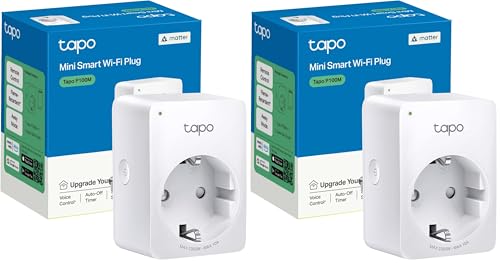 Tapo Matter Prise Connectée WiFi, Prise Intelligente Compatible avec Alexa, Google Home et SmartThings, 10A Type F, Contrôler Le radiateur, la cafetière, la Lampe à Distance, Tapo P100M (Lot de 2)