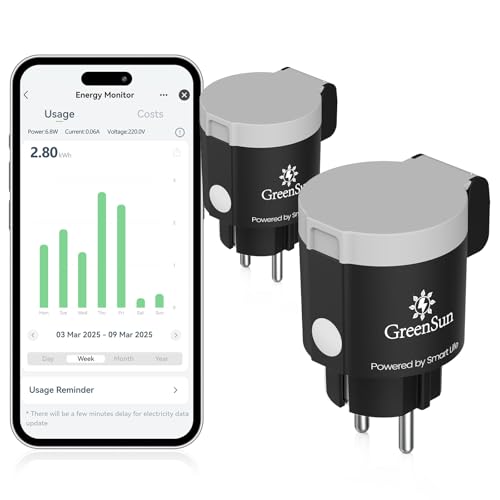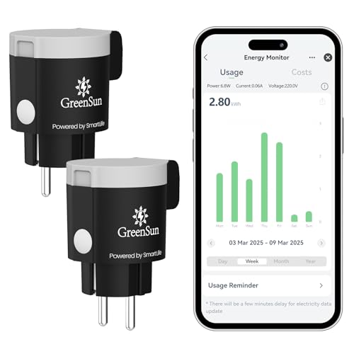 GreenSun Prise Connectée Extérieure - 16A Type E Prise WiFi Programmable Commande Vocale Compatible avec Alexa et Google Home, Compteur d'Énergie, Contrôle APP Smart Life 2,4GHz IP44