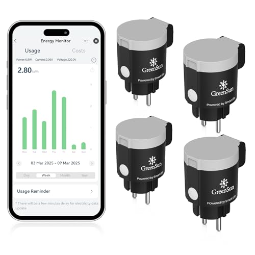 GreenSun Prise Extérieure Connectée - 16A Type E 4PCS Prise WiFi Programmable Minuterie Commande Vocale Compatible avec Alexa et Google Home Compteur d'Énergie, Contrôle APP Smart Life 2,4GHz IP44