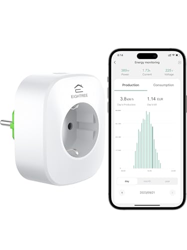 EIGHTREE Prise Connectée WiFi, Mesure la Production d'Électricité des Mini-Systèmes Photovoltaïques, Compatible avec Alexa, SmartThings et Google Home, Commande Vocale, 16A, Type F (NON Type E)