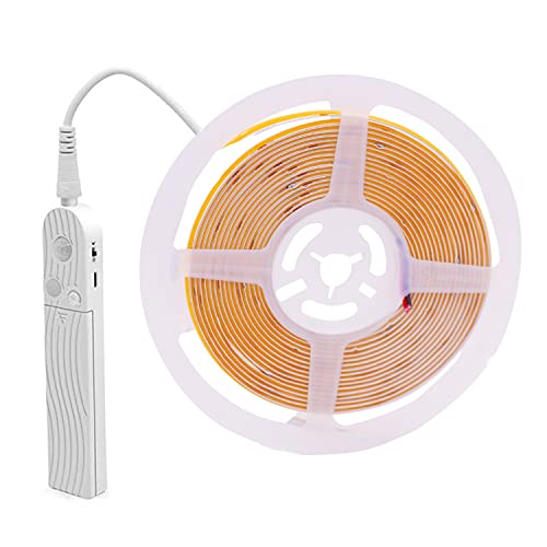 Bande lumineuse à LED COB avec capteur de mouvement PIR, ruban d'éclairage à haute densité 320 diodes/m, lampe à corde Flexible alimentée par batterie, 5V (1m, Blanc froid)