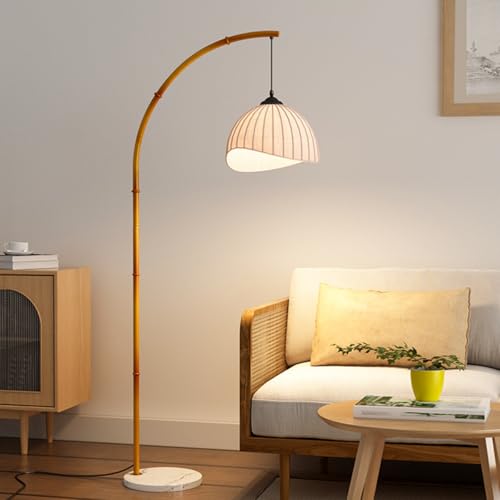 Lampadaire rétro de 66 pouces, lampe de lecture latérale pour canapé, abat-jour en tissu fait à la main, lampe haute, lampadaire d'angle en arc, base en marbre, lumières verticales, interrupteur