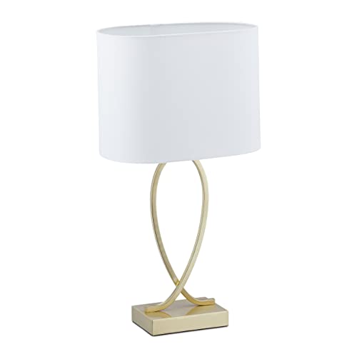 Relaxdays Lampe de Chevet, Abat-Jour, Douille E27, H x L x P : 51 x 28 x 18 cm, pour Salon et Chambre, doré/Blanc