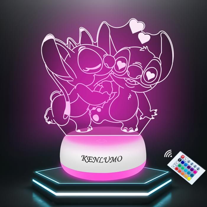 KENLUMO Veilleuse Stitch Lampe de nuit Noël Enfant Cadeau Stitch Angel Lampe de chevet télécommande Touchez pour changer de couleur