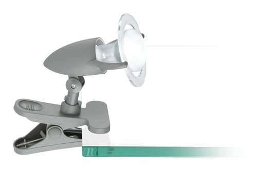 Velamp IN232 Lampe de Lecture LED avec clip. Orientable. Interrupteur ON/OFF. Lumière diffuse et reposante, Plastique, Gris