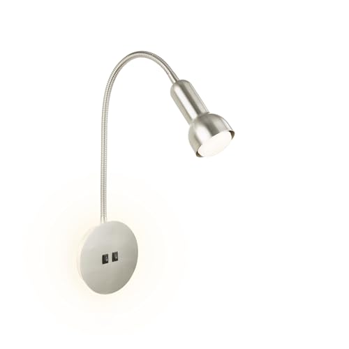 BRILONER - Plafonnier, applique murale, lampe de lecture avec bras flexible, interrupteur marche/arrêt via fonction tactile, 1x LED/GU10, 5 watts, 400 lumens, 3 000 Kelvin, métal, nickel mat