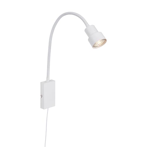 BRILONER - Lampe de chevet LED, applique murale, lampe de lecture avec bras flexible, interrupteur marche/arrêt via fonction tactile, 1x LED/GU10, 5 watts, 400 lumens, 3 000 kelvins, métal, blanc