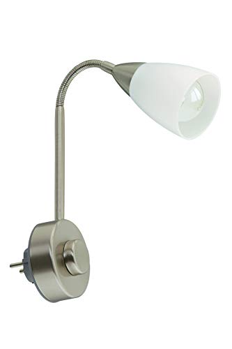 B·LED BARCELONA LED BarcelonaLED Applique murale avec bras articulé orientable couleur chrome argenté et câble avec prise et interrupteur lampe de lecture Culot E27