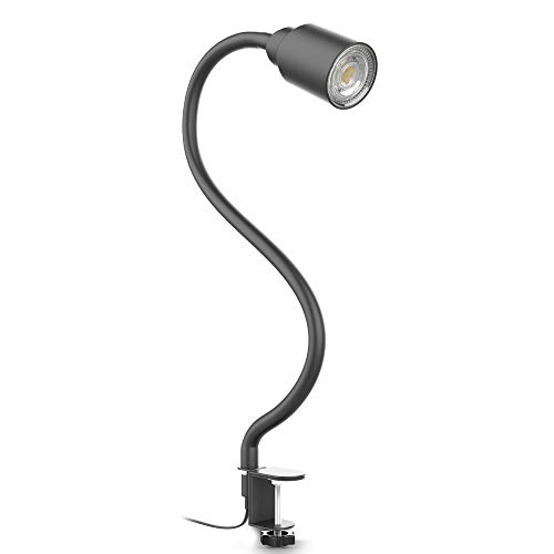 B.K.Licht lampe de lecture LED, pivotante & inclinable avec bras flexible, avec ampoule LED GU10 5W, 3000K, lampe à pince pour bureau & chevet, noir-mat