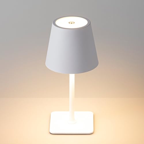 BRILONER - Mini lampe de table LED sans fil avec Touch, intensité variable par paliers, IP44, lampe de chevet, de lecture, de camping, de table, à accu, 12x19,5 cm, Blanc