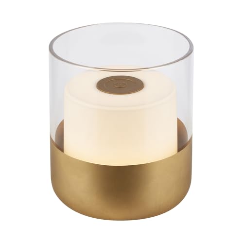 BRILONER - Mini lampe de table LED sans fil avec verre, Lampe de chevet à intensité variable Touch, Lampe de table Outdoor & Indoor, Lampe de camping, Lumière blanche chaude, 9x10 cm, Couleur or