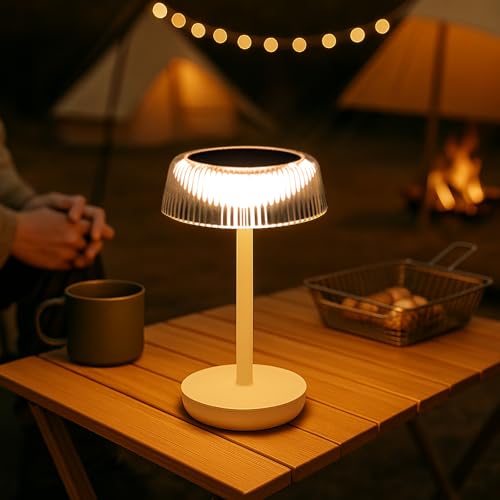 Ecvivk Lampe de table solaire d'extérieur lampe de table LED sans fil à intensité variable blanc chaud et RVB lampe de table avec capteur de lumière, lampes solaires pour intérieur/extérieur terrasse.