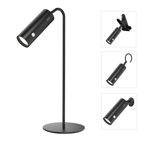 EMKE Lampe de table LED sans fil, 6 en 1, rechargeable, à intensité variable, avec LED tactile, noire, 3 modes de couleur, applique murale magnétique réglable à 360°, USB-C