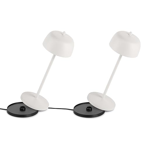 Theta 2x Lampe de Table LED Sans Fil Rechargeable - Lampe Dimmer pour éclairage intérieur et extérieur IP65 - Abat Jour Lampe de Chevet pour Chambre, 2700 - 4000K, 9-24h. LVL (Blanc)