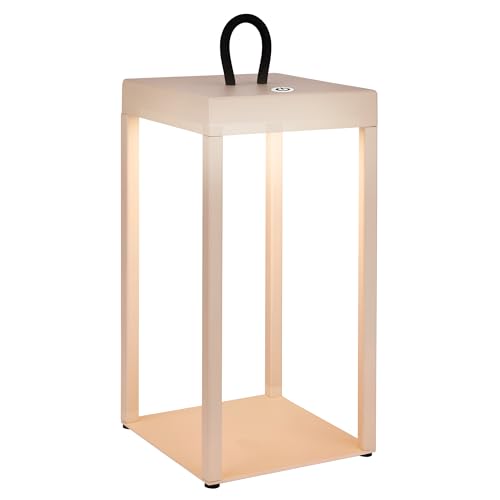 BRILONER - Lampe de table LED sans fil avec touche, intensité par paliers, batterie & source interchangeables, IP44, lumière chaude, lanterne LED, lampe décorative portable, 13x13x31,5 cm, beige