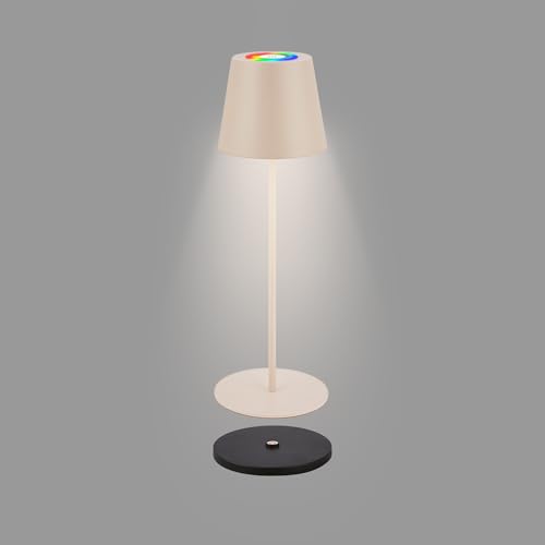 BRILONER - Lampe de table LED RGBW sans fil IP44 avec station de recharge, variateur continu, batterie et source interchangeables, lampe de chevet, lampe décorative, lampe LED, 36x12 cm, beige