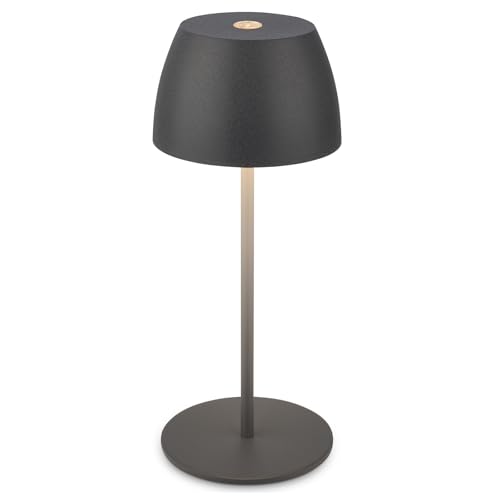 BRILONER - Mini lampe de table LED sans fil, tactile, à intensité variable par paliers, IP44, lampe de chevet, de lecture, de camping, batterie, d'extérieur, 12x19,5 cm (DxH), noir