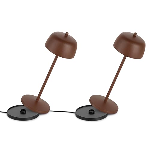 Theta 2x Lampe de Table LED Sans Fil Rechargeable - Lampe Dimmer pour éclairage intérieur et extérieur IP65 - Abat Jour Lampe de Chevet pour Chambre, 2700 - 4000K, 9-24h. LVL (Corten)