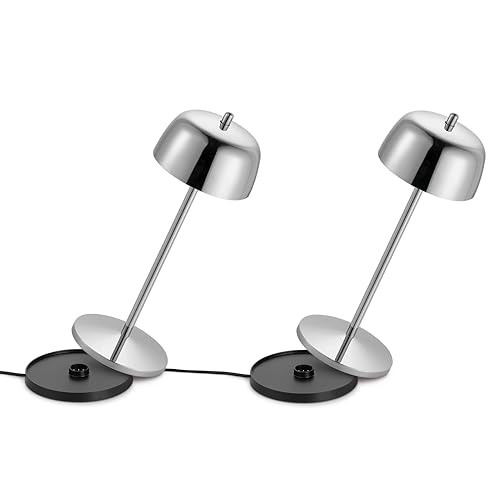 BRILONER - Mini lampe de table LED sans fil, Lampe de chevet à intensité variable Touch, Lampe de bureau, Lampe de lecture, Lampe de table extérieure & intérieure, Chrome Mat