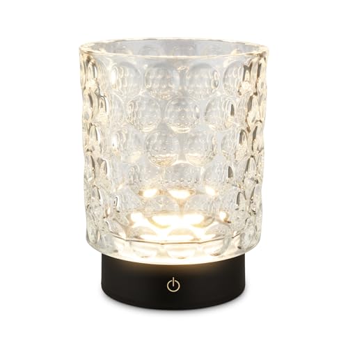 BRILONER - Lampe de table LED sans fil IP44 avec corps en verre, variateur d'intensité tactile par paliers, chevet, décorative, lampe de table à batterie, salon, chambre d'enfant, 15x11 cm, claire