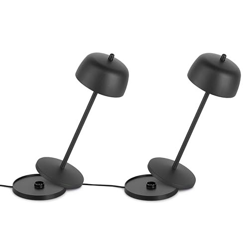 Theta 2x Lampe de Table LED Sans Fil Rechargeable - Lampe Dimmer pour éclairage intérieur et extérieur IP65 - Abat Jour Lampe de Chevet pour Chambre, 2700 - 4000K, 9-24h. LVL (Noir)