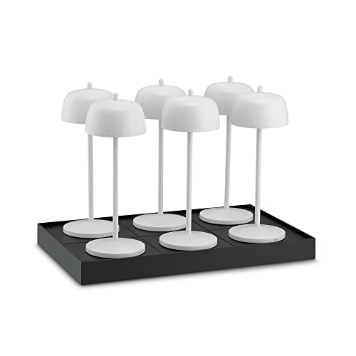 Theta 6x Lampe de Table LED Sans Fil Rechargeable - Abat Jour Lampe Dimmer de Restaurant et HO.RE.CA - Éclairage Intérieur et Extérieur IP65, 2700 - 4000K, 9-24h. LVL (Blanc)