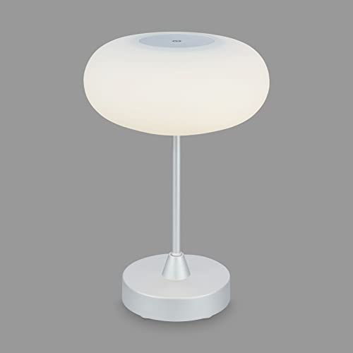 Briloner - Lampe de table LED sans fil avec tactile, intensité variable par niveaux, abat-jour en verre, blanc/chromé