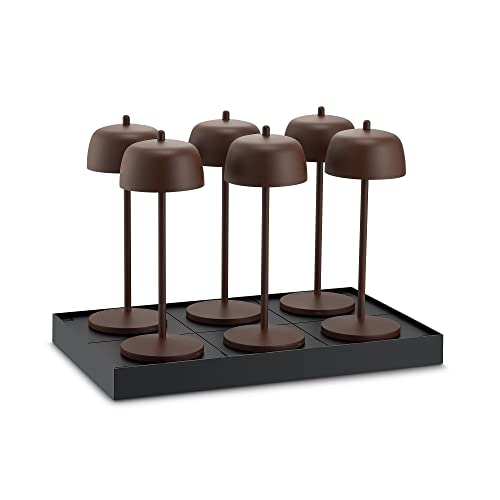 Theta 6x Lampe de Table LED Sans Fil Rechargeable - Abat Jour Lampe Dimmer de Restaurant et HO.RE.CA - Éclairage Intérieur et Extérieur IP65, 2700 - 4000K, 9-24h. LVL (Corten)