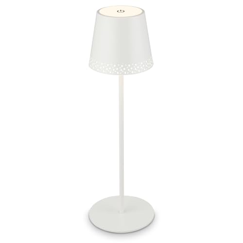 REV Lampe de table LED sans fil 38 cm 2 W avec variateur tactile et batterie Li-ion de 4000 mAh (environ 7 heures d'autonomie) - Lampe de table blanche en plastique IP44 pour l'intérieur et