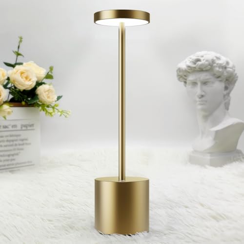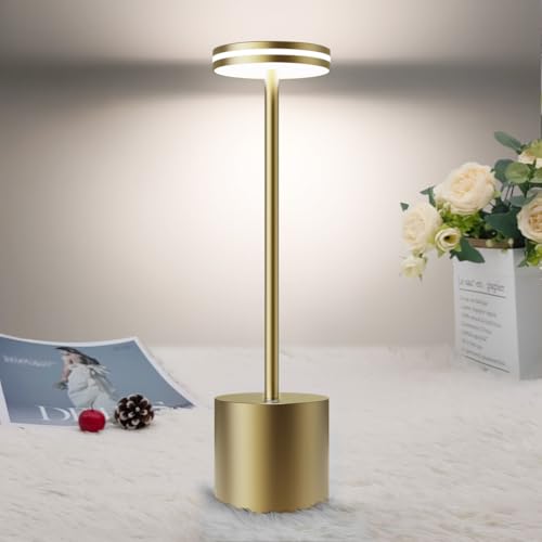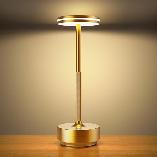 Hapfish Lampe de table sans fil rechargeable, 5000mAh lampe de bureau LED en métal design charge usb, 3 modes de couleur, pour chevet, exterieur, terrasse, restaurant