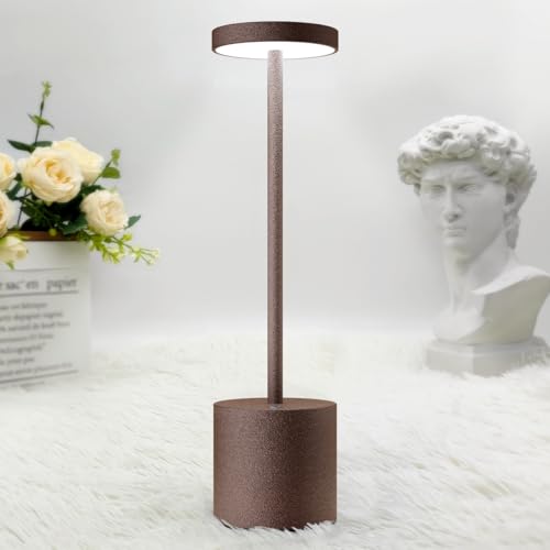 Theta 6x Lampe de Table LED Sans Fil Rechargeable - Abat Jour Lampe Dimmer de Restaurant et HO.RE.CA - Éclairage Intérieur et Extérieur IP65, 2700 - 4000K, 9-24h. LVL (Corten)