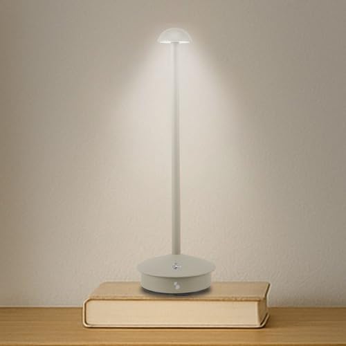 DEELUX Lampe de Table sans fil Rechargeable, Lumiere Bureau Tactile LED, Design Style Crème, Metal, étanche, Dimmable Lampe Chevet sans fil, Convient pour l'intérieur et l'extérieur (Beige)