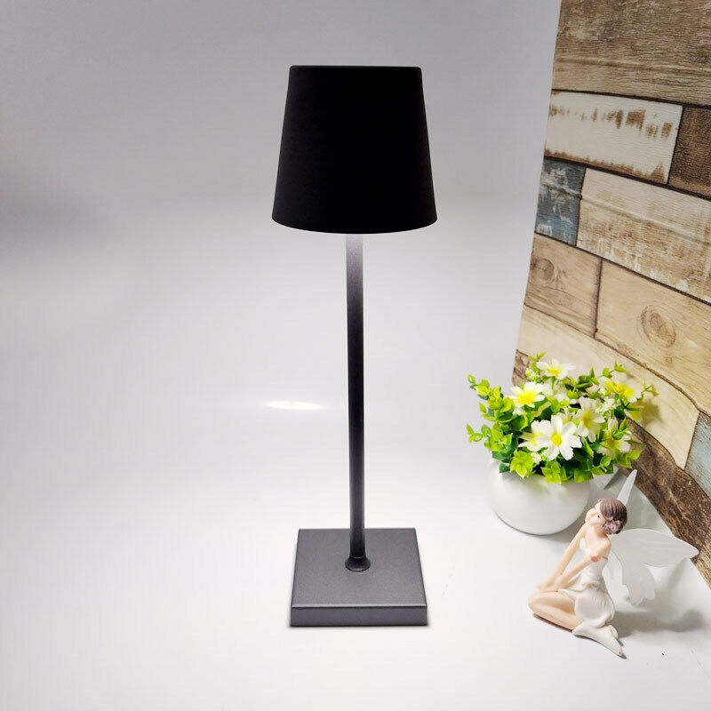 Lampe de table sans fil rechargeable, lampe de bureau LED en métal design charge usb, 3 modes de couleur, pour exterieur, terrasse, restaurant