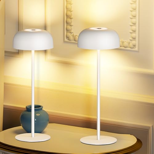 LED Lampe de Table LED Sans fil Rechargeable Métal,3 Couleur Lampe de Bureau Chevet Dimmable Contrôle Tactile, IP54 pour Patio,Terrasse,Café, Chambre (Blanc, 2)