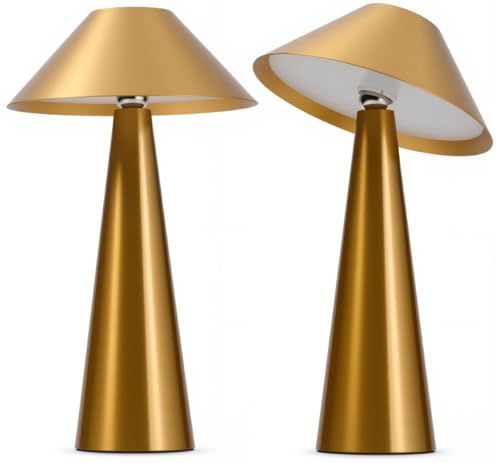Bojim Lampe de Table LED Sans Fil Rechargeable USB, Tactile Dimmable Lampes, Interieur a Poser Batterie 4000mAh, pour Chevet Exterieur Restaurant Terrasse, Tête de Lampe Pivotante, IP54 Lot de 2, Or