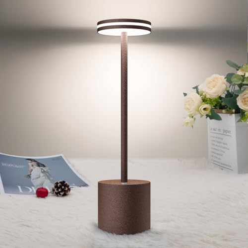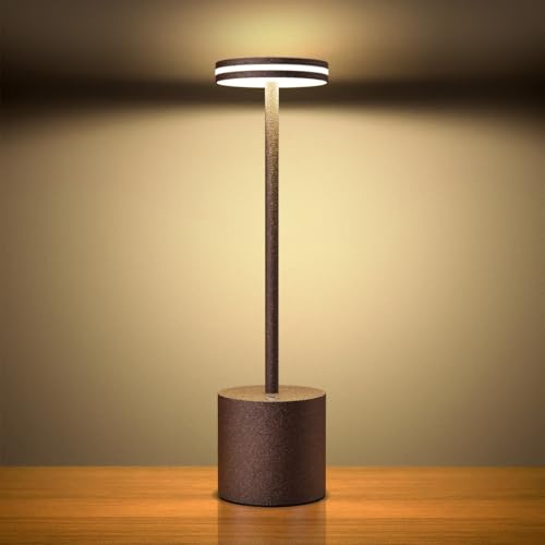 bravzurg Lampe de table LED sans fil rechargeable usb, 5000mAh lampe de bureau puissante pile, Lumiere tactile, 3 modes de couleur, pour chevet, camping, exterieur, interieur, restaurant