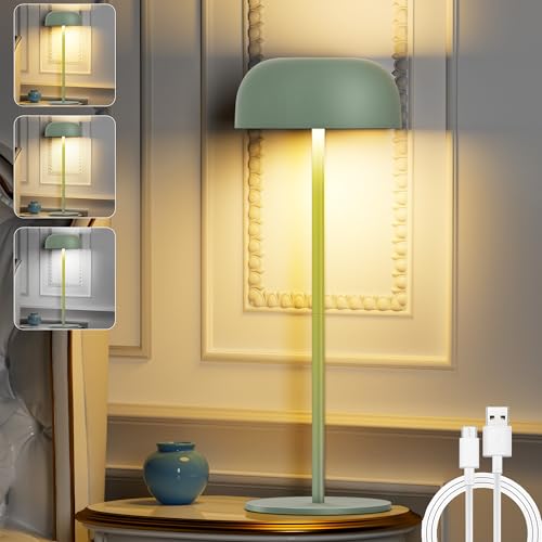 LED Lampe de Table LED Sans fil Rechargeable Métal,3 Couleur Lampe de Bureau Chevet Dimmable Contrôle Tactile, IP54 pour Patio,Terrasse,Café, Chambre (vert, 1)